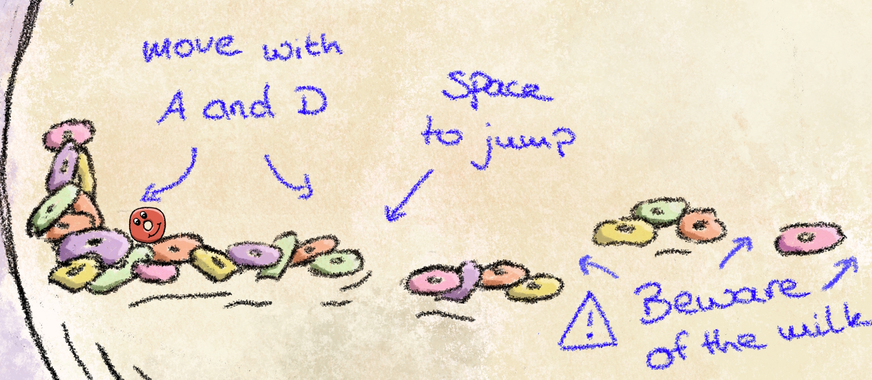 A cute little plattformer with "Froot Loops" as a theme and a surprise at the end. We created everything from scratch and during the jam. Our own artwork and audio.